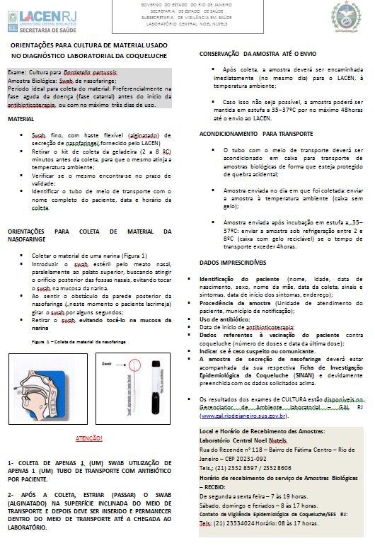 É um agravo de notificação compulsória imediata (<24h para SMS e SES) em todo o território nacional, a partir da Portaria GM 1.271 , 06 de junho de 2014. Deve ser feito coleta de secreção nasofaringe (SWAB) para realização de cultura para diagnóstico laboratorial.